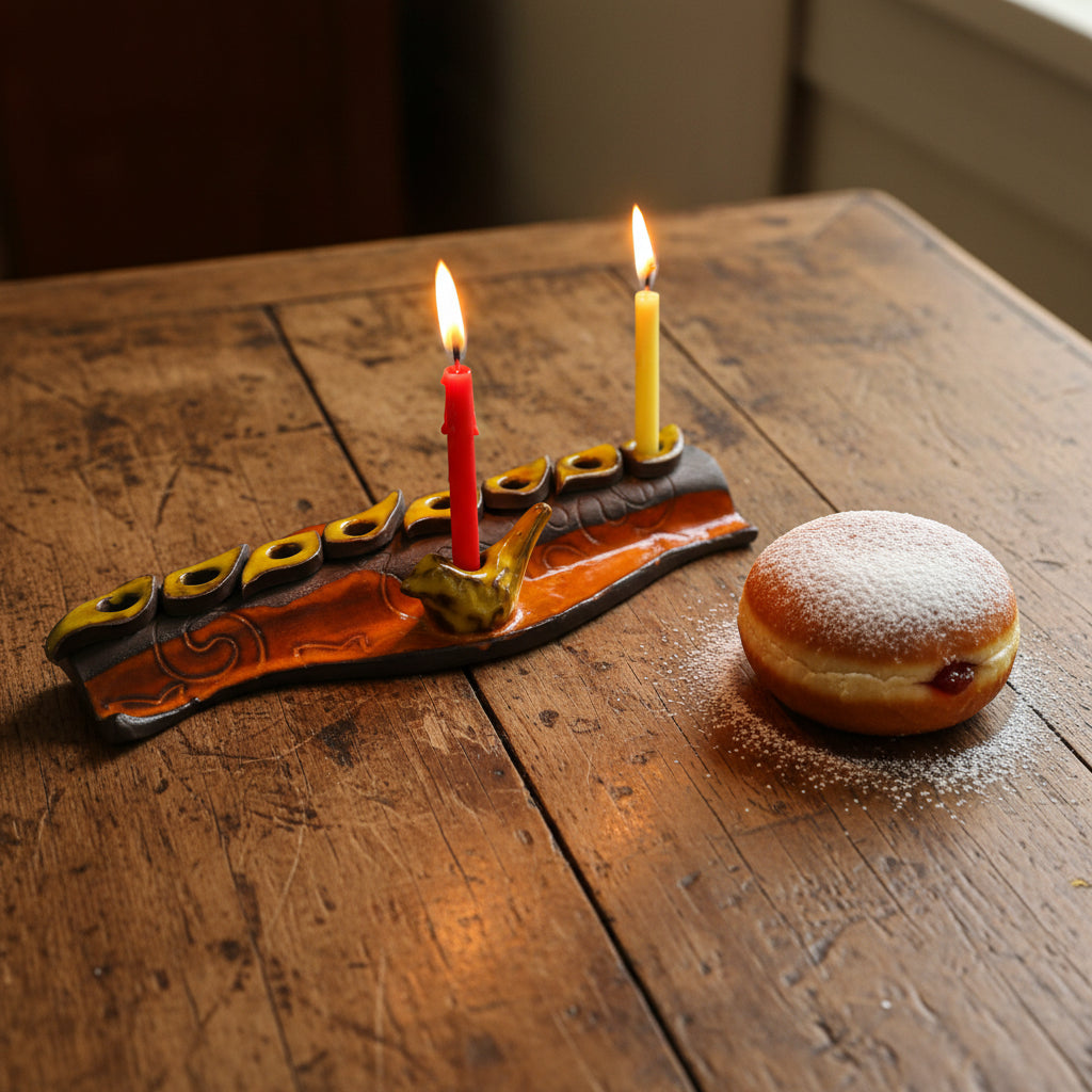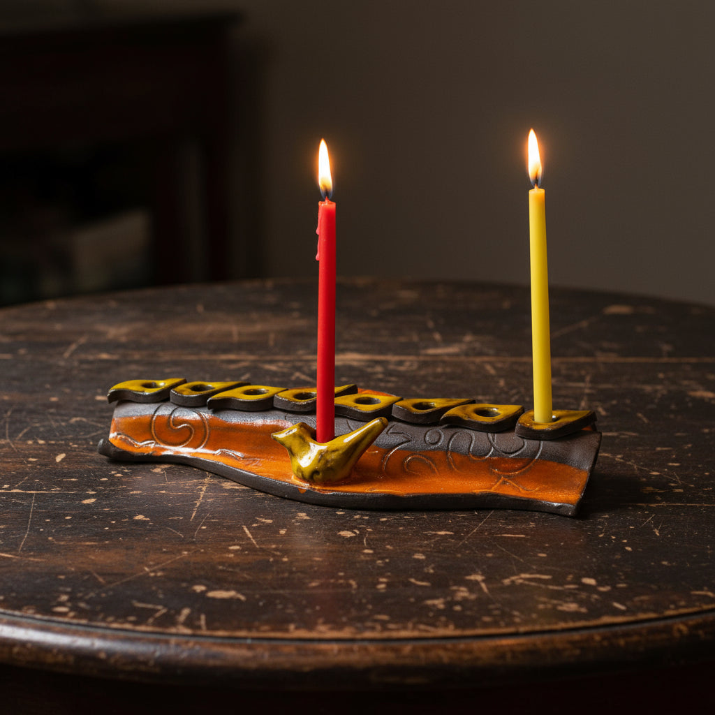 חנוכייה מעוצבת מקרמיקה בכתום וצהוב