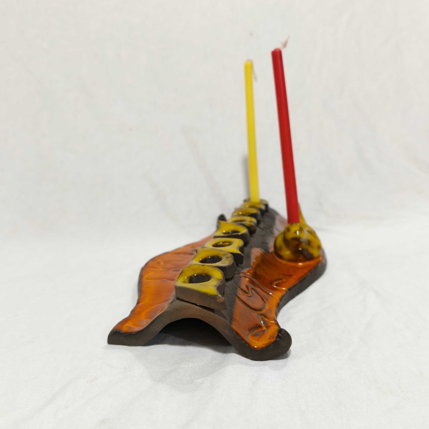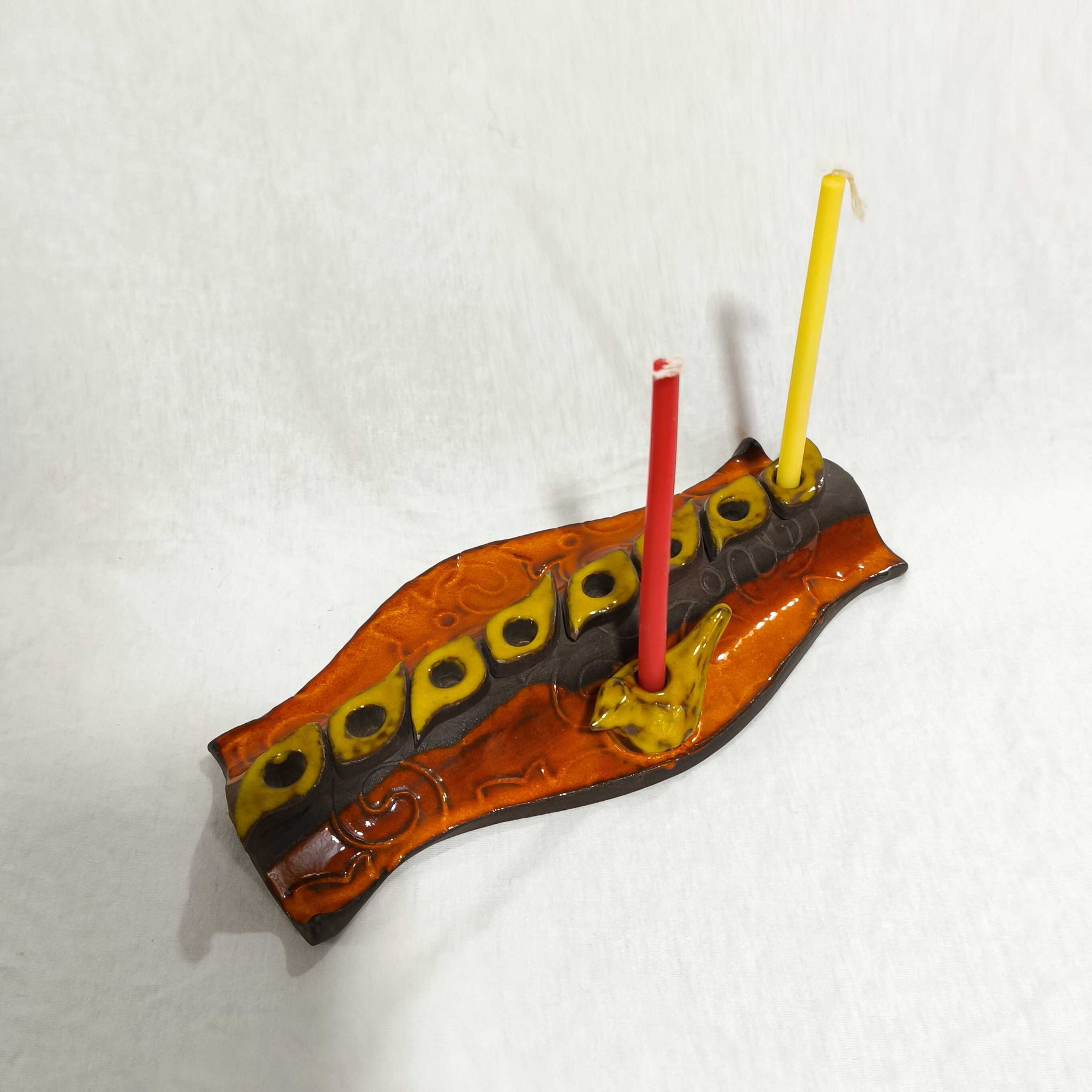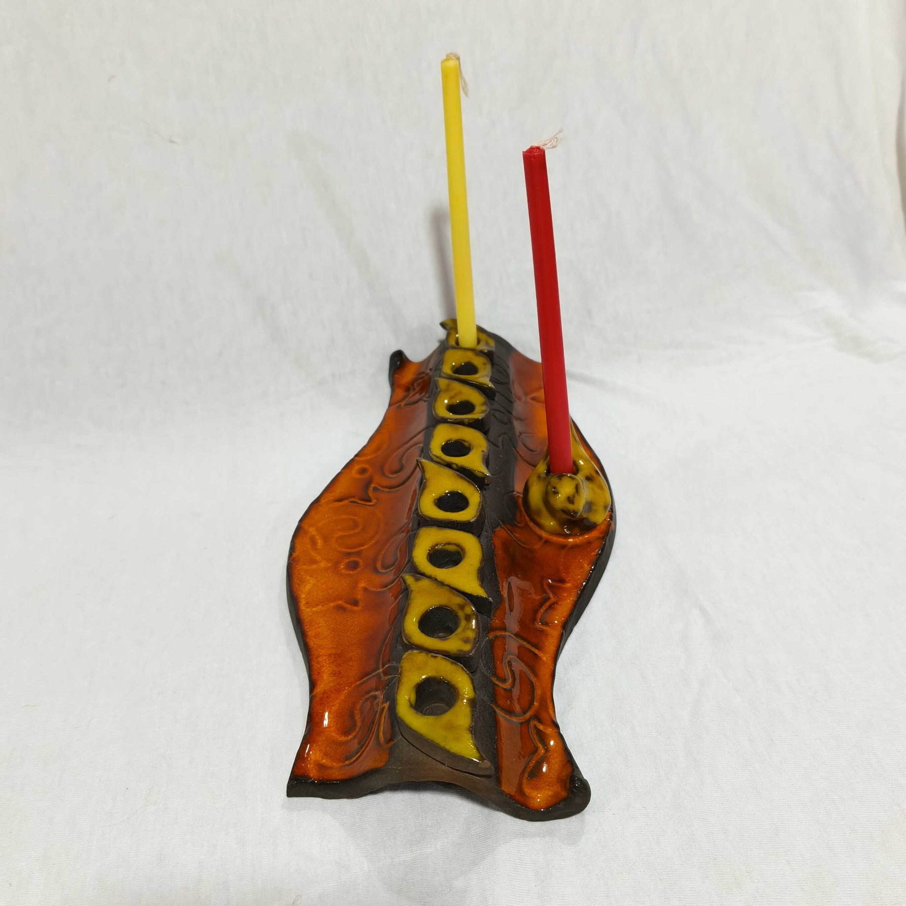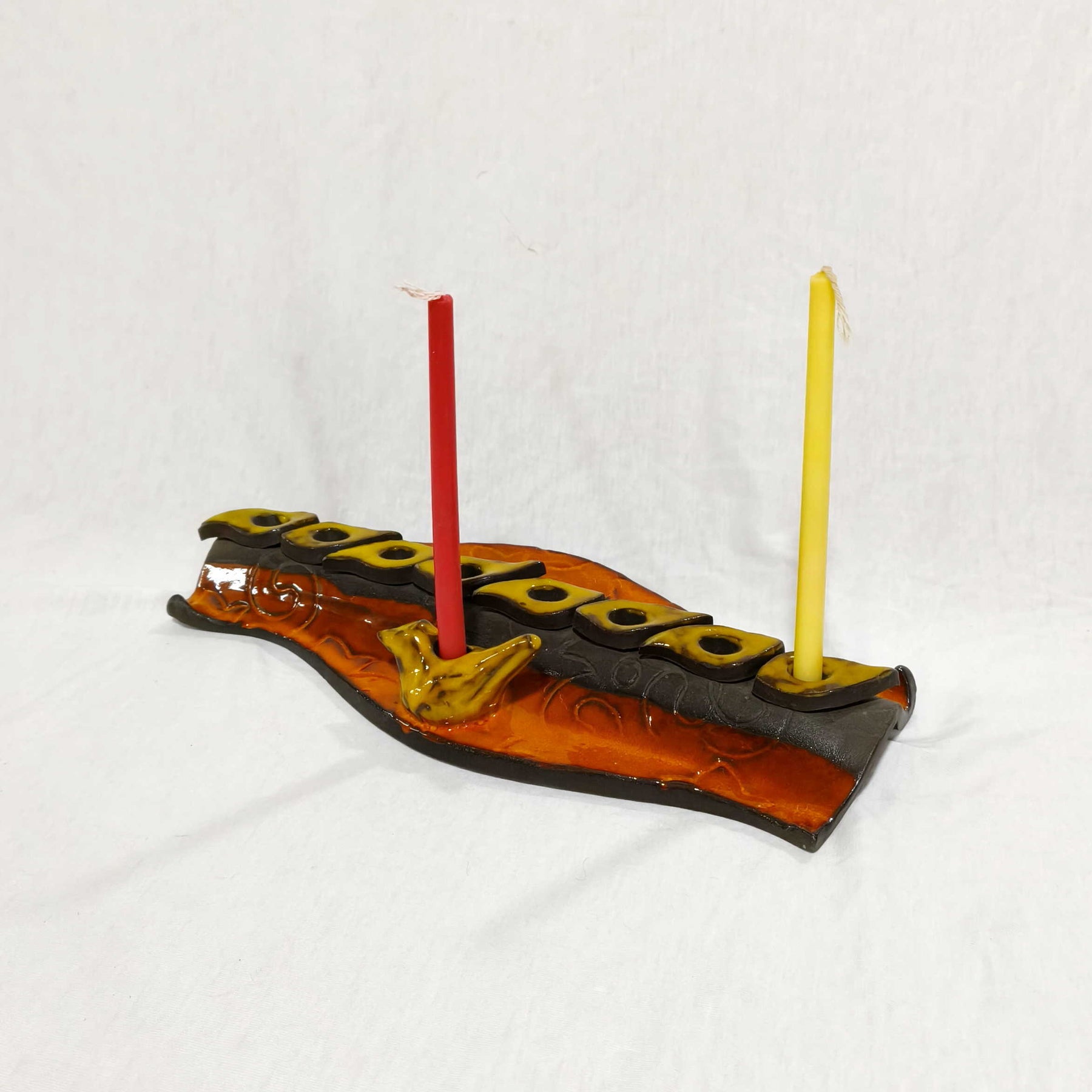 חנוכייה מעוצבת  מקרמיקה  בכתום וצהוב