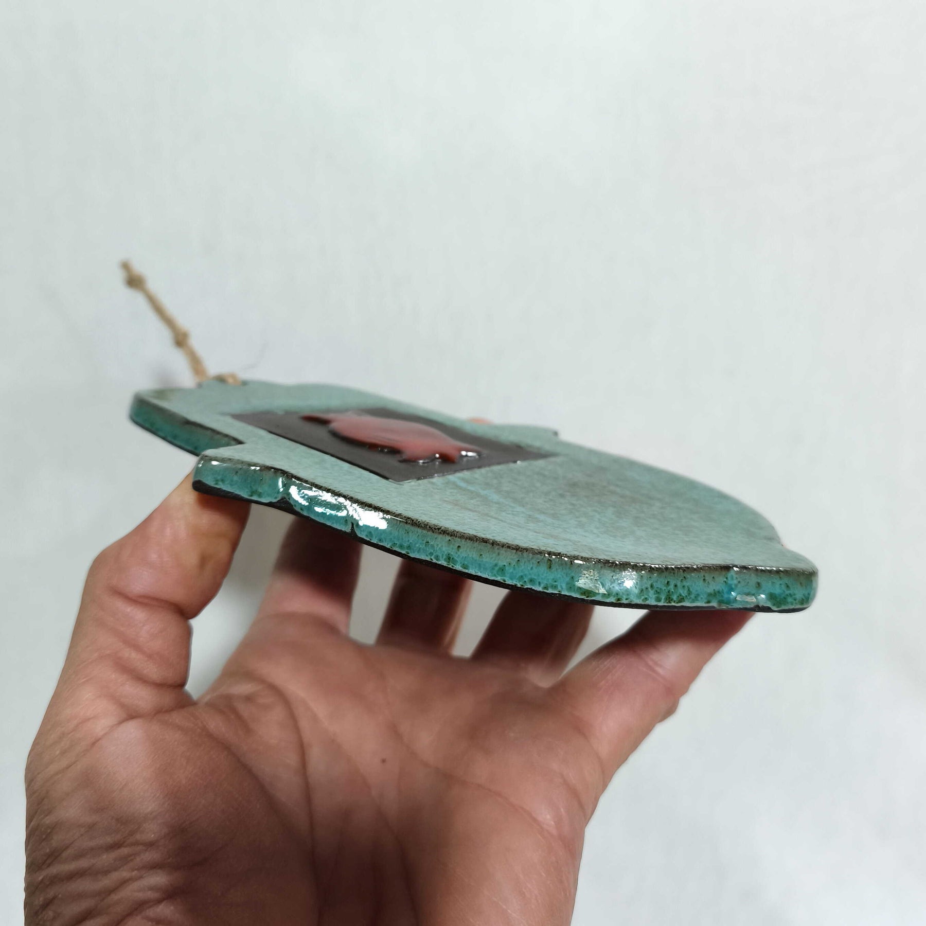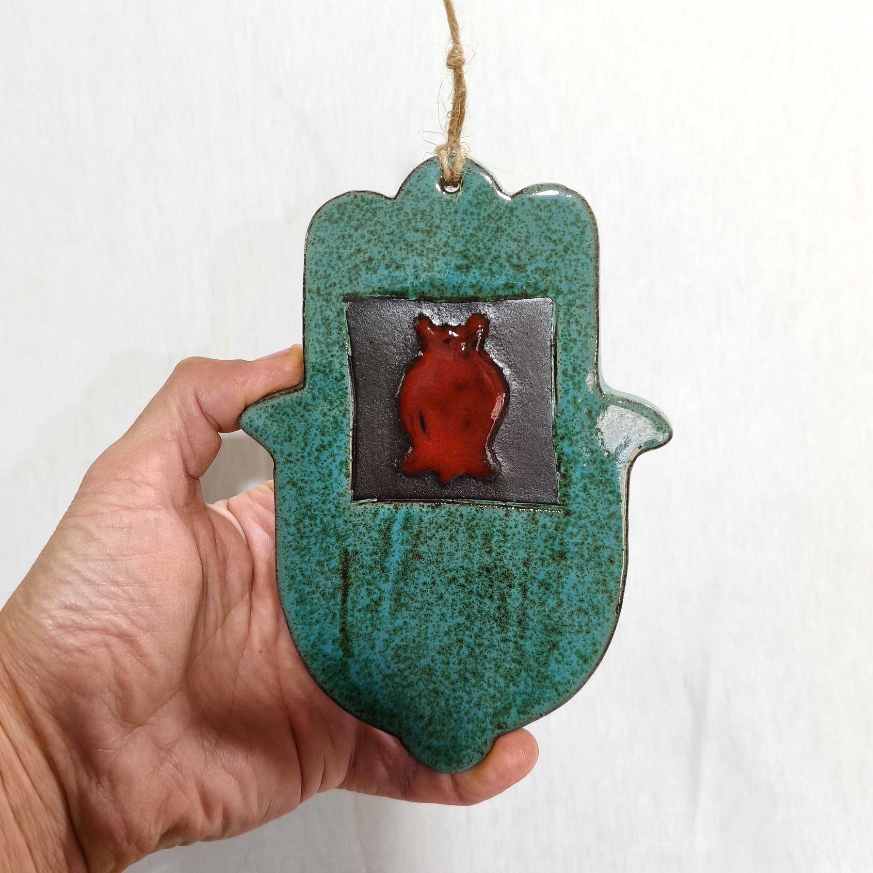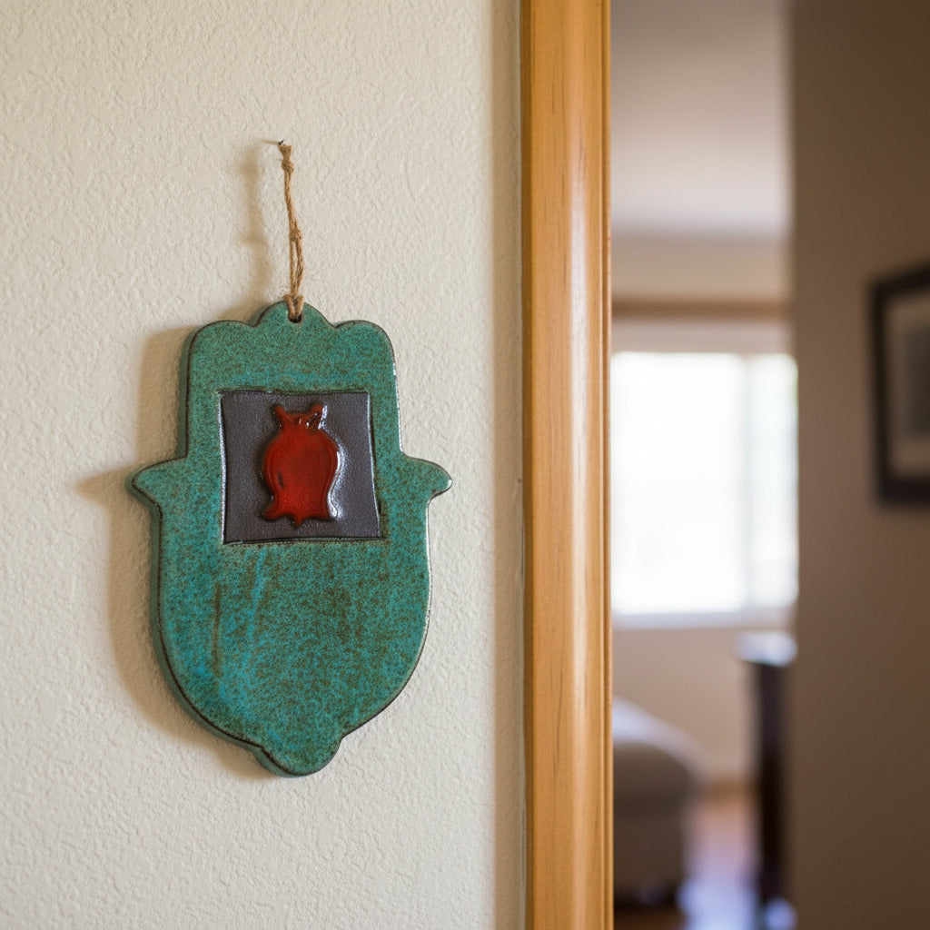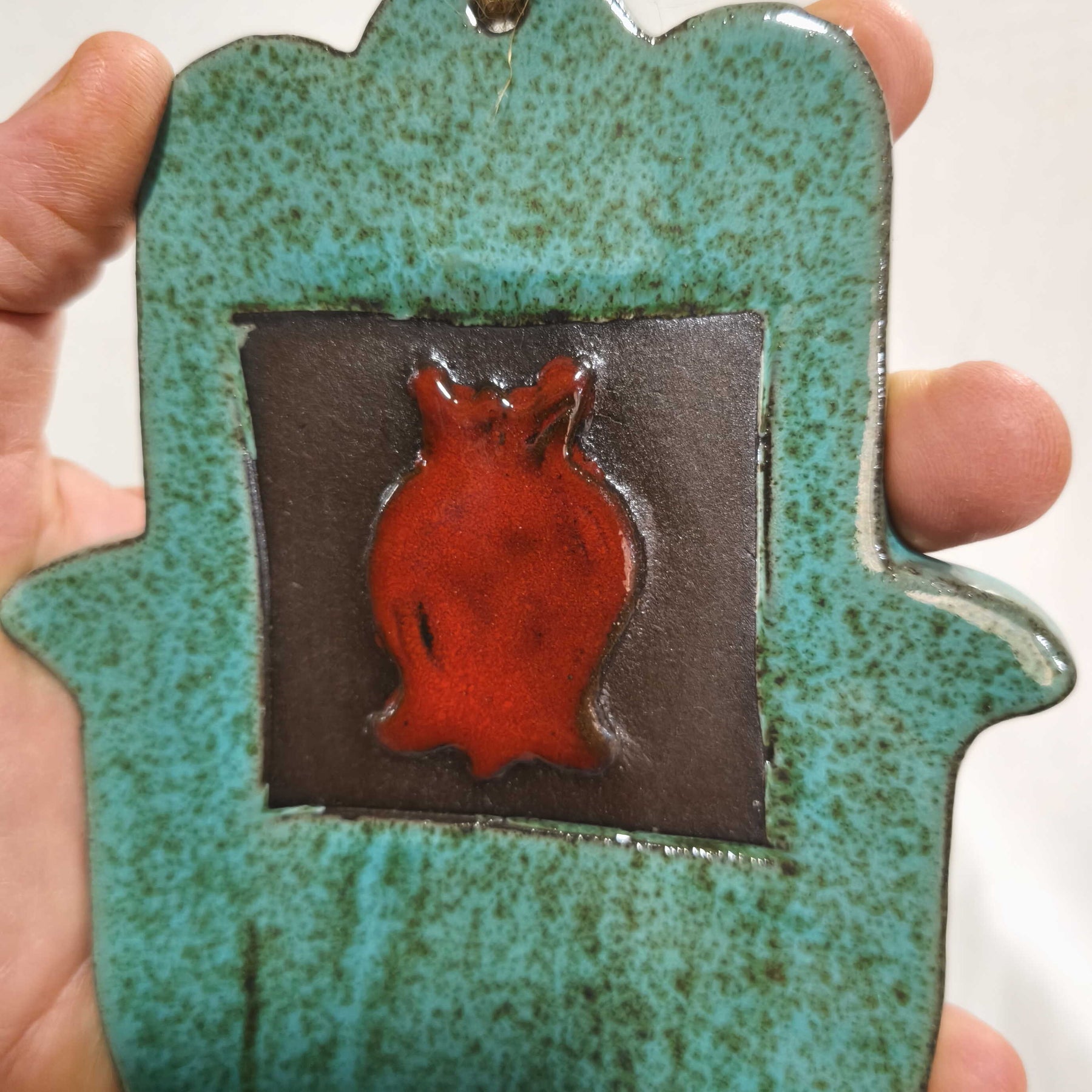 חמסה בטורקיז ירקרק עם תבליט רימון באדום