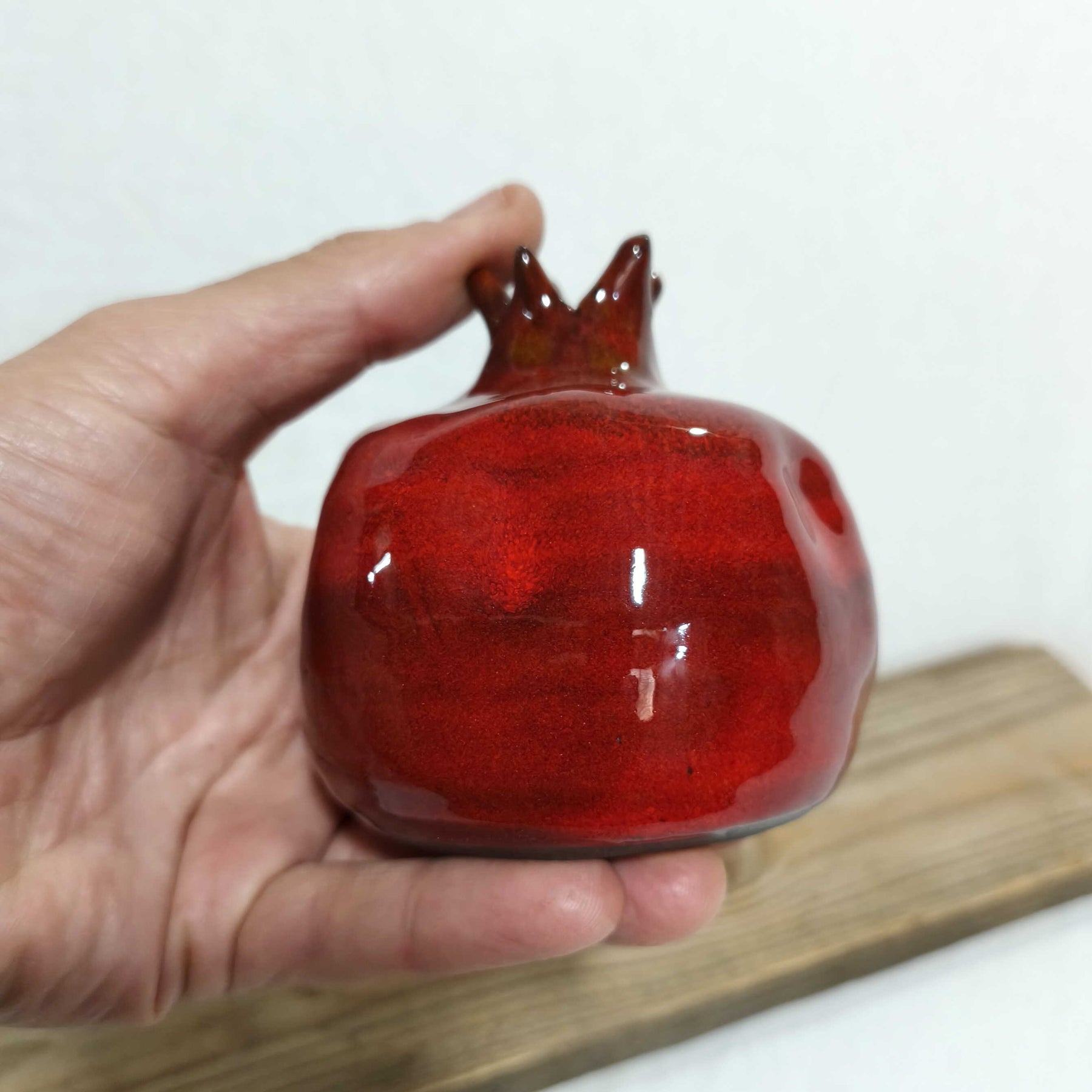 רימון בעבודת יד. את הרימון אני יוצר מחמר שחור על האבניים ומעצב את הצורה ביד, כך שכל רימון הוא מעט שונה. אפשר להשתמש בו כקישוט או כאגרטל לפרחים יבשים. רוב האנשים אוהבים לאסוף רימונים בצבעים שונים נראה נהדר בשילוב עם עוד רימונים בצבעים אחרים. במסורת היהודית הרימון מהווה סמל לשגשוג.